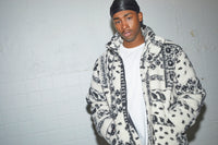 • Varm pile-jakke med all-over print og afslappet pasform.