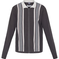 Retro Stripe Zip Polo - Brown