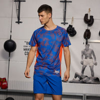 Dive into your training regime with the Athletic AOP Training Tee for men. The dynamic blue hue complemented by energising orange accents provides a bold look without overshadowing your commitment to performance. The tee is made with EVERDRI™ technology, which ensures you stay dry and comfortable and can follow your pace from warm-up to cool-down. The unique pattern on the front and back is not only visually stunning, it also represents your relentless drive and the unpredictable nature of your fitness journey. With the discreet placement of the logo, this T-shirt subtly signals your choice of quality without shouting for attention.