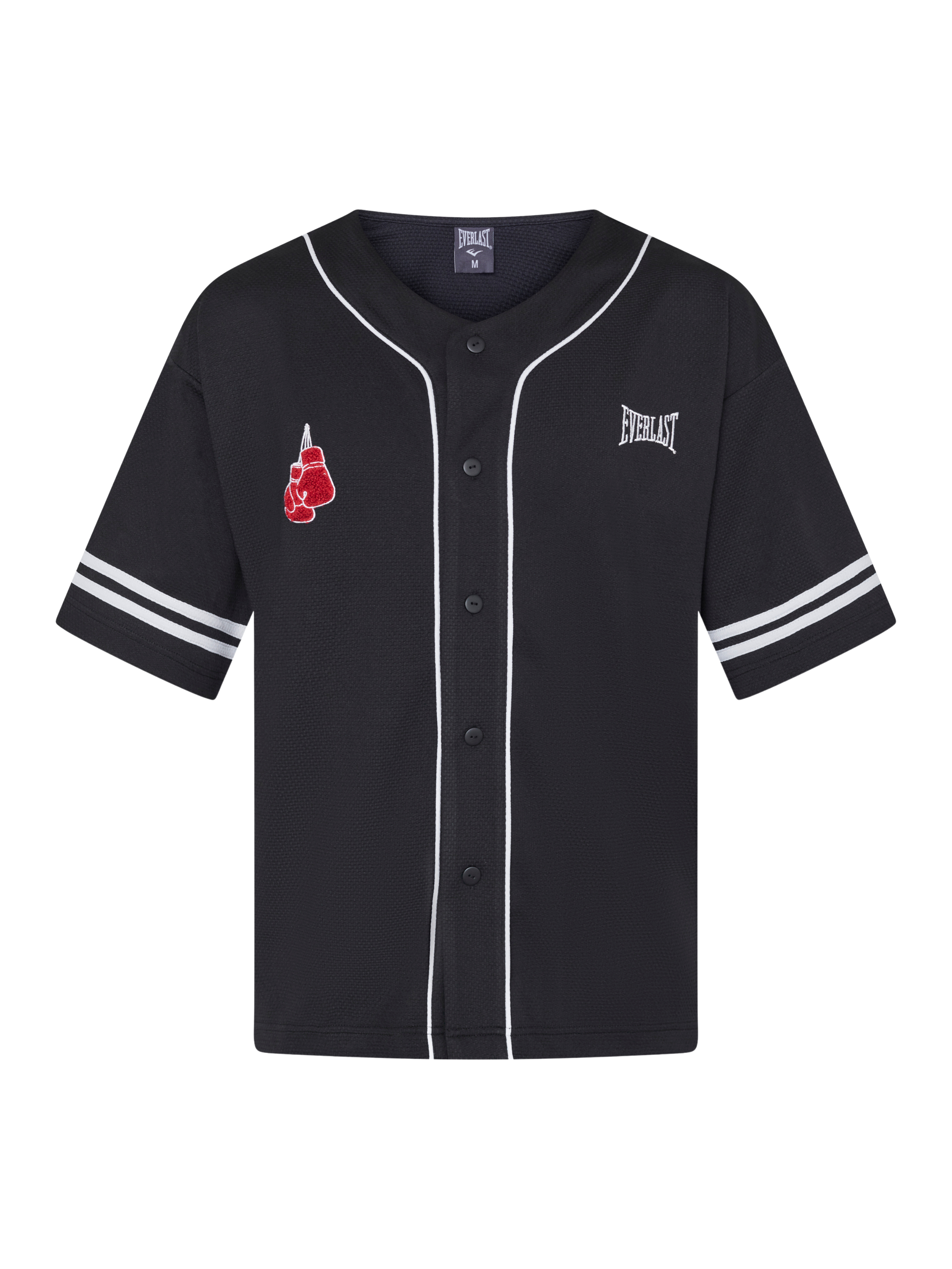 Sporty baseball inspireret jersey i polyester med et street udtryk. Kontrastpiping, knaplukning og ikoniske Everlast detaljer.